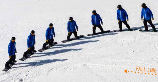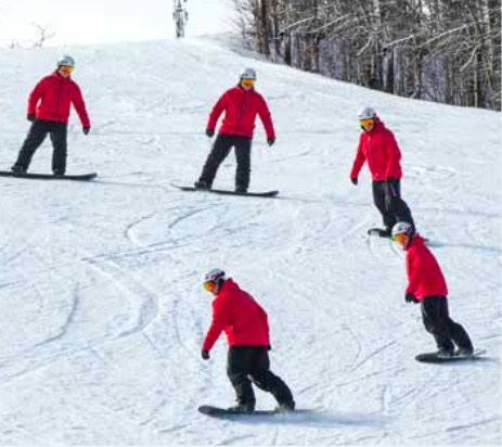*如果需要緊急煞車,先轉動雪板,讓雪板跟前進的方向垂直,再翹高板子,讓板底對著不想撞上去的目標。